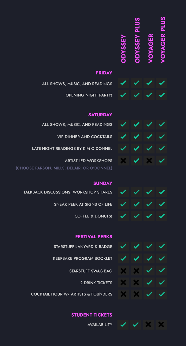 Starstuff’s long-form artists: Parker Mills, Joanna Parson, Carmella Riley, and Xan Herring